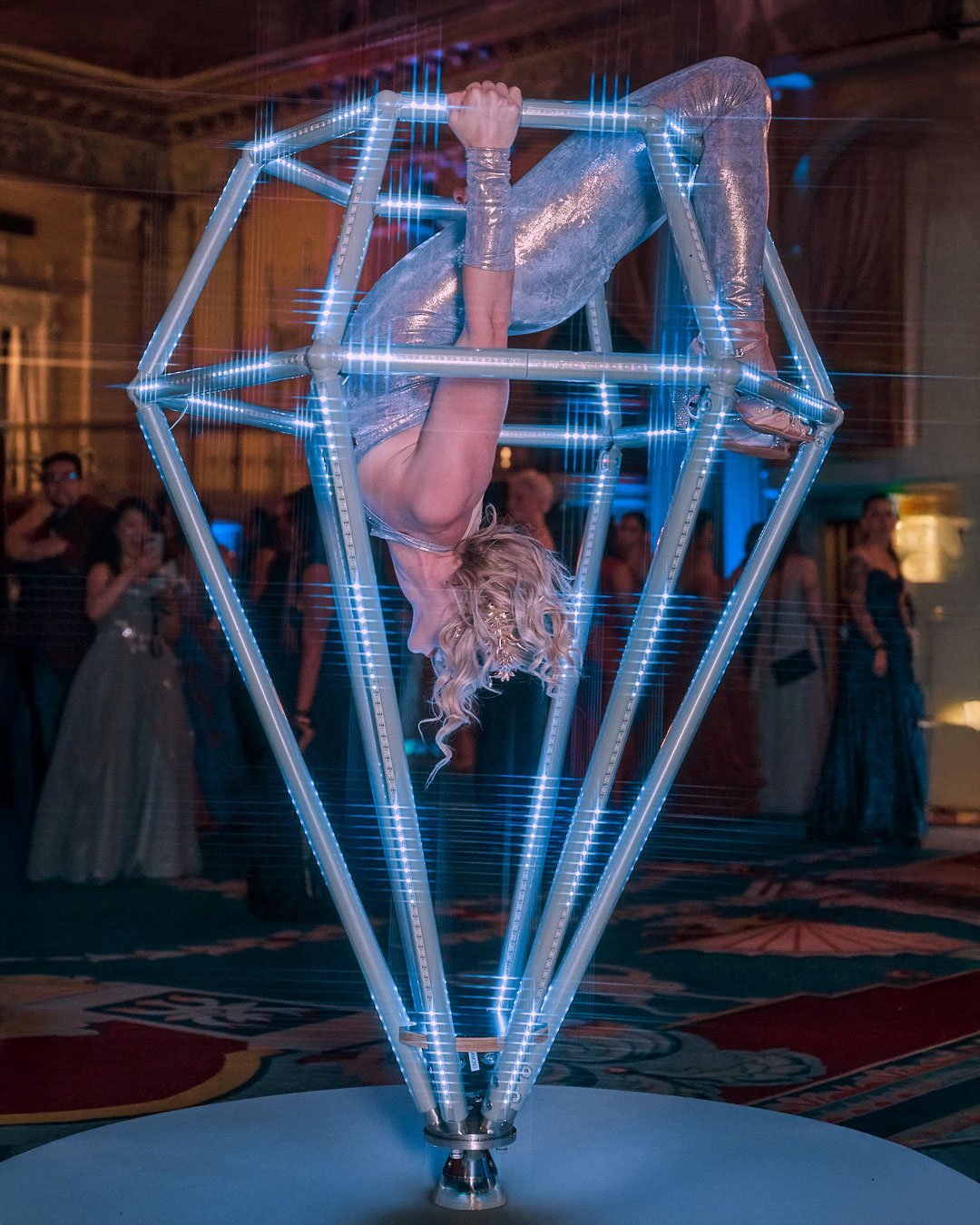 Make your event shine with our stunning LED Diamond—an elegant, illuminated diamond that spins gracefully on a circular stage or is suspended from our aerial rig for a dazzling display.