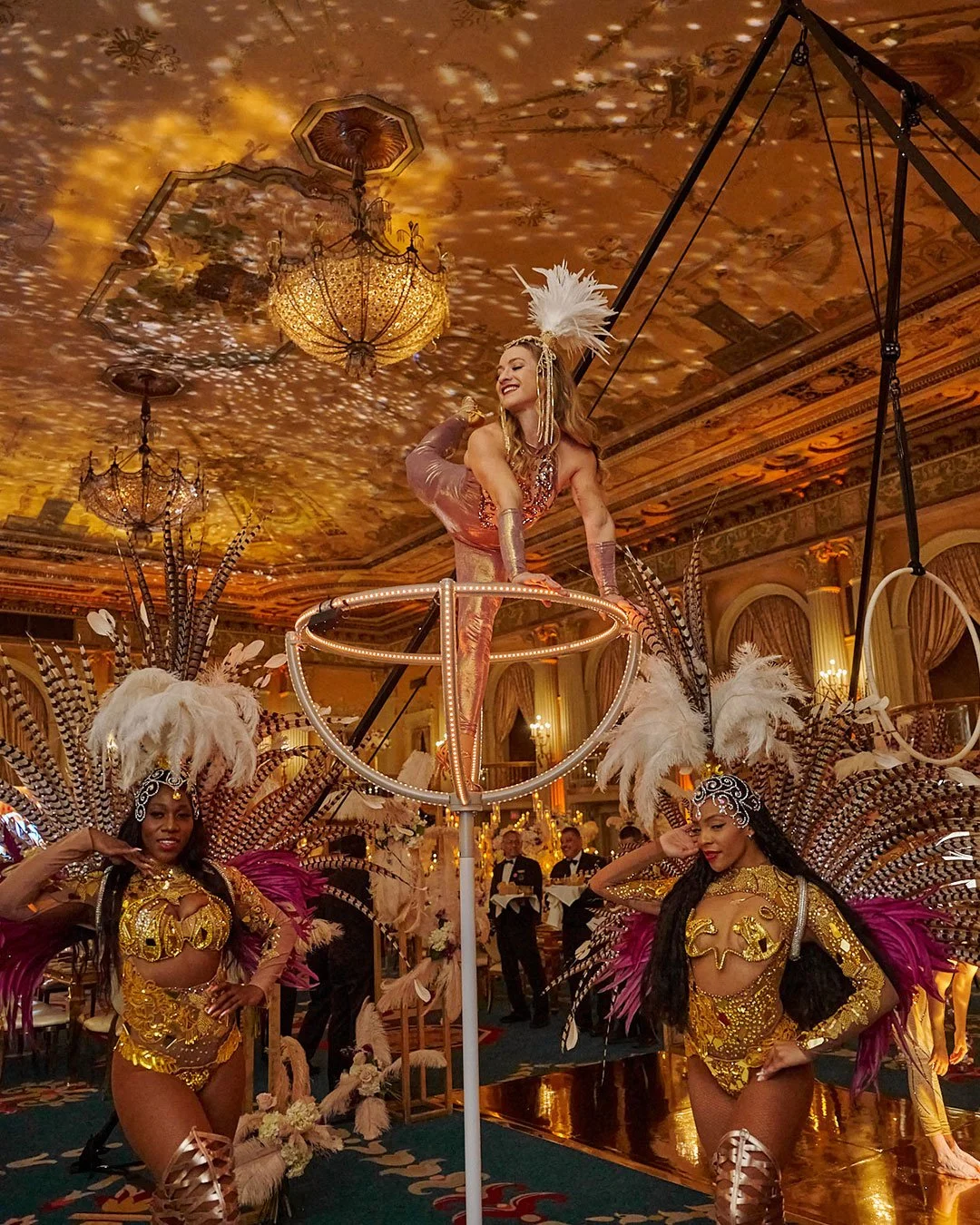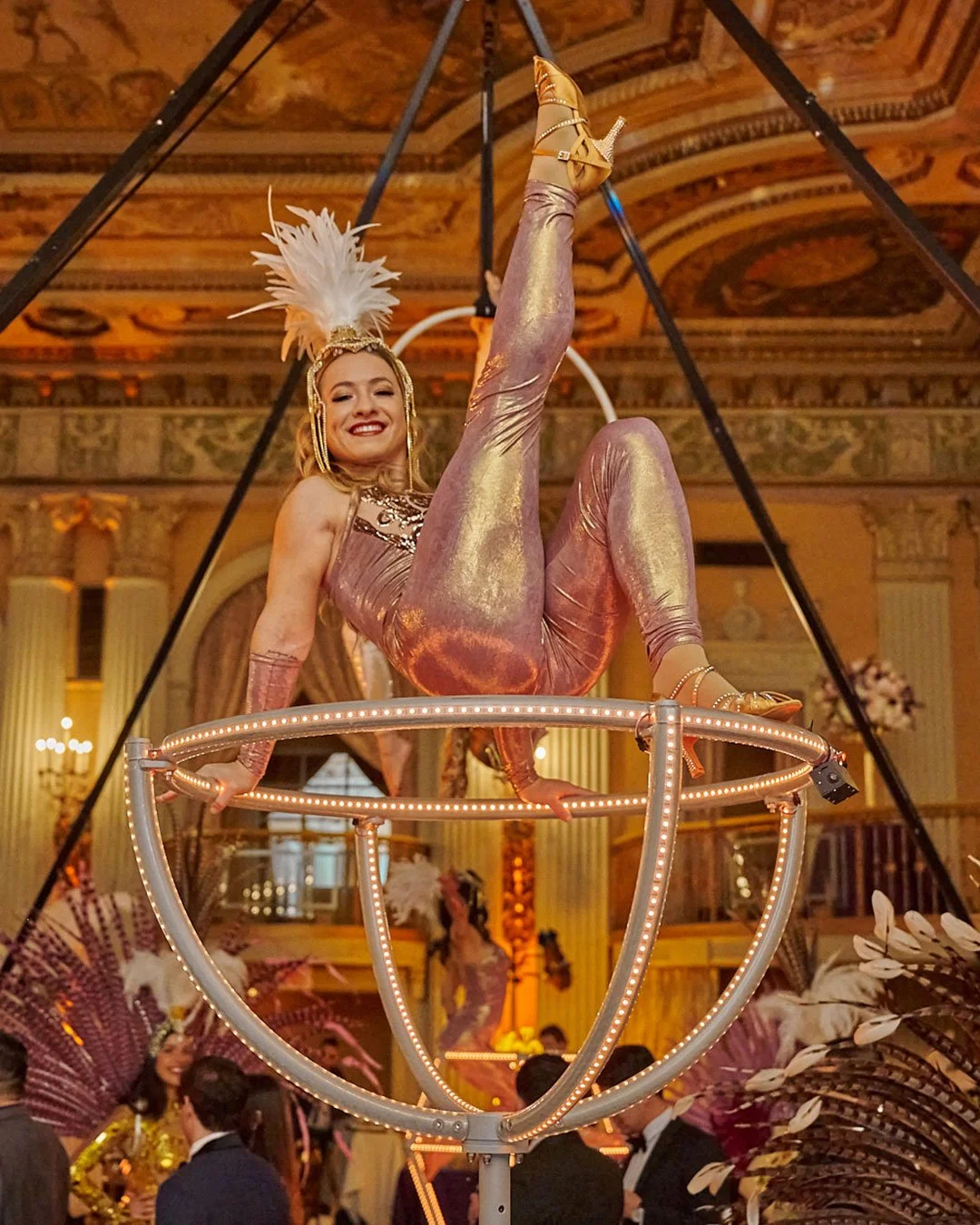 A larger-than-life, glowing martini glass that serves as both a performance stage and a dazzling drink service. Our stunning showgirls, aerialists, and contortionists bring this unique prop to life performing within and around the LED Martini and pouring your drink of choice from it.