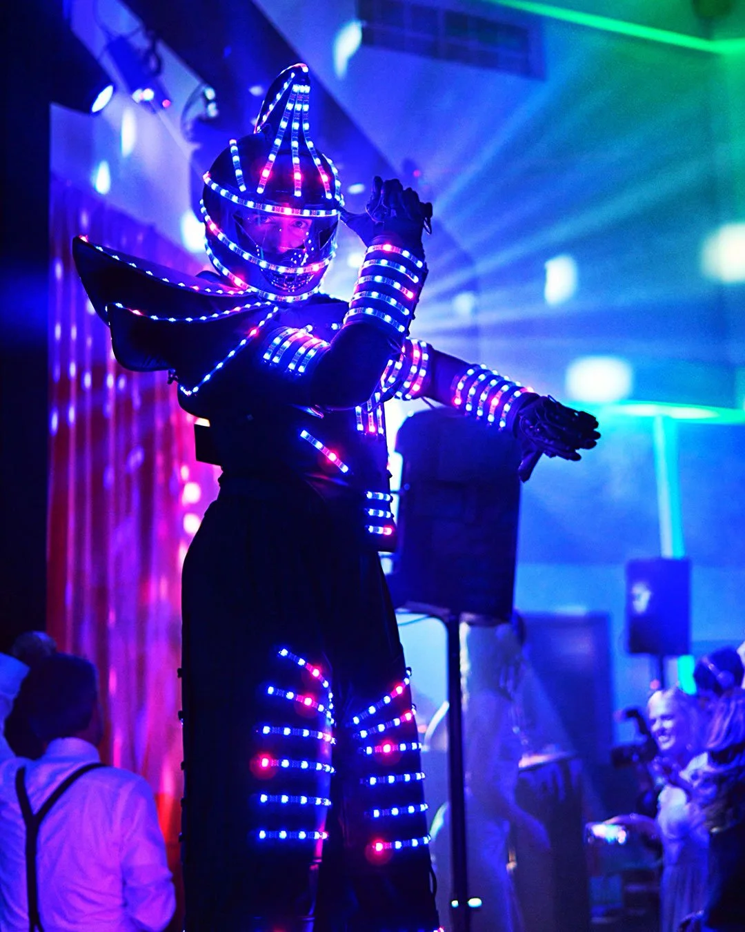 Keeping the dance floor pumping and the cameras flashing all night long, our LED Robots are available in Los Angeles, Santa Barbara, Palm Springs, San Diego, and worldwide!