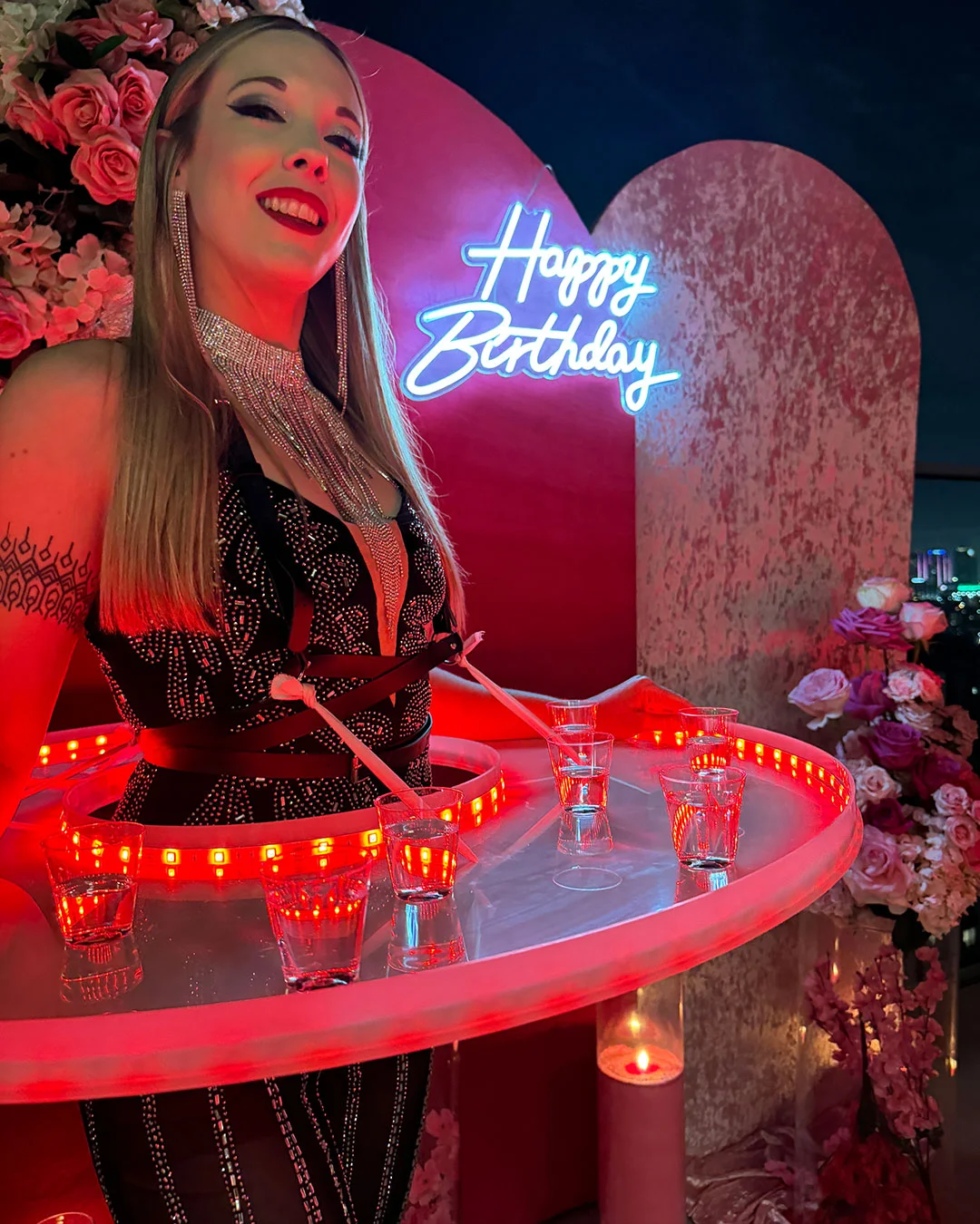 Want to make a statement at your next party or event? Hire one of our models or LED servers to help elevate the atmosphere and serve your guests in style. Our LED trays can serve drinks, snacks or gifts to make your party one to remember.