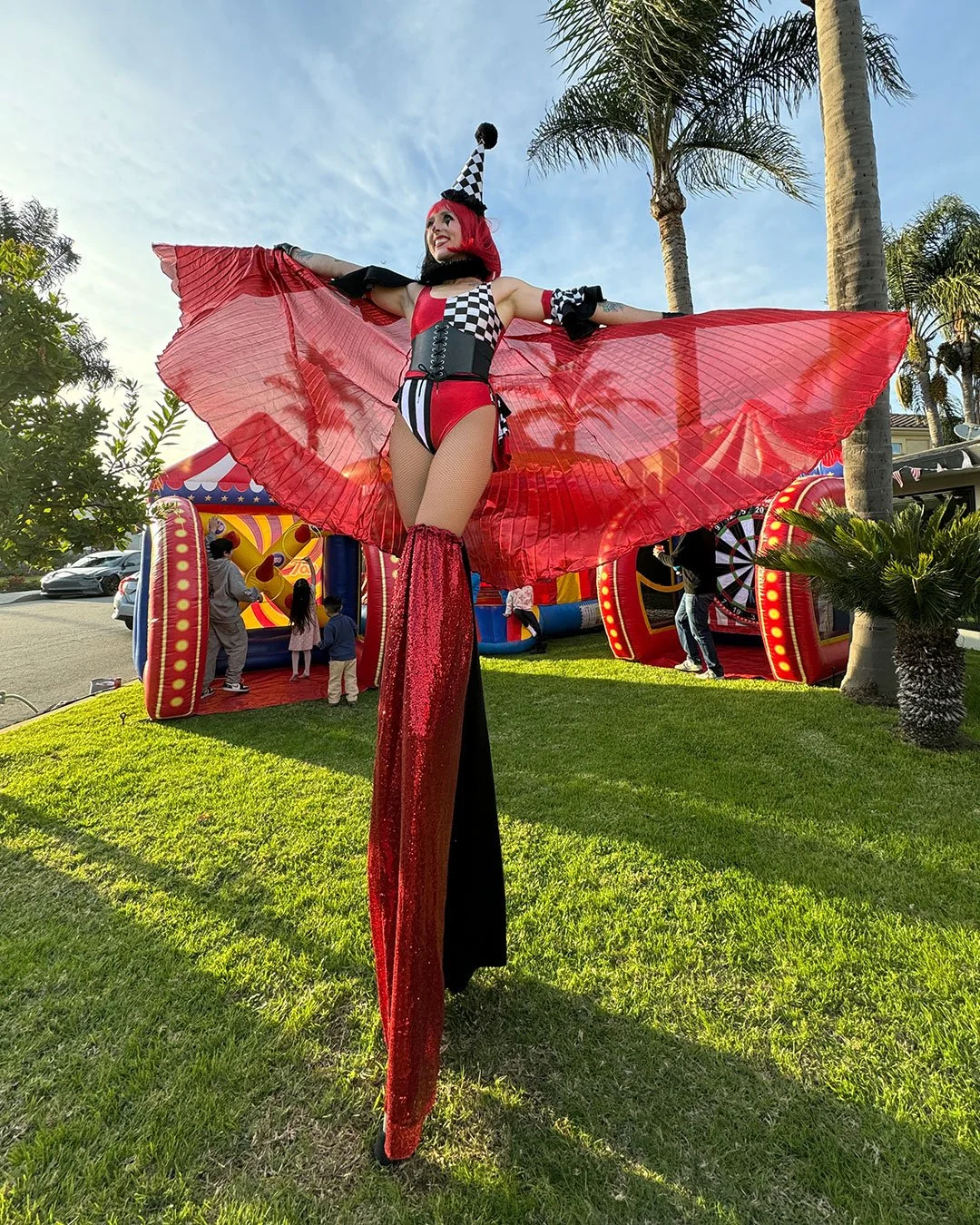 Elevate your event with our stilt walkers! Ideal for a wide range of occasions, they interact with guests and add a striking visual element to any scene.