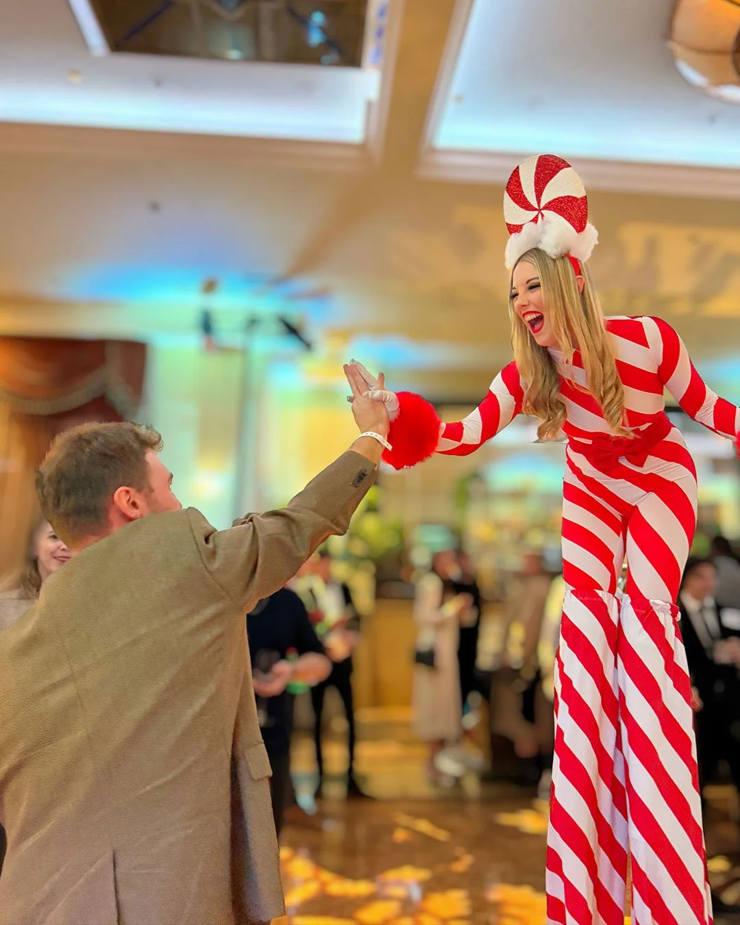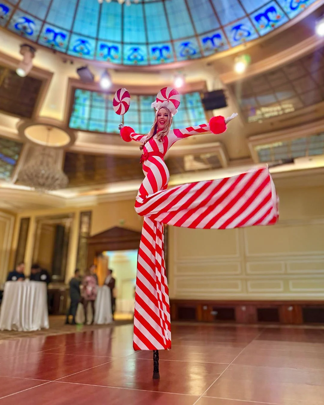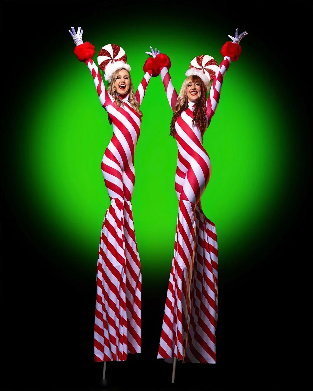 Candy Cane Stilt Walkers in Los Angeles / Holiday Stilt Walkers / Christmas Stilt Walkers